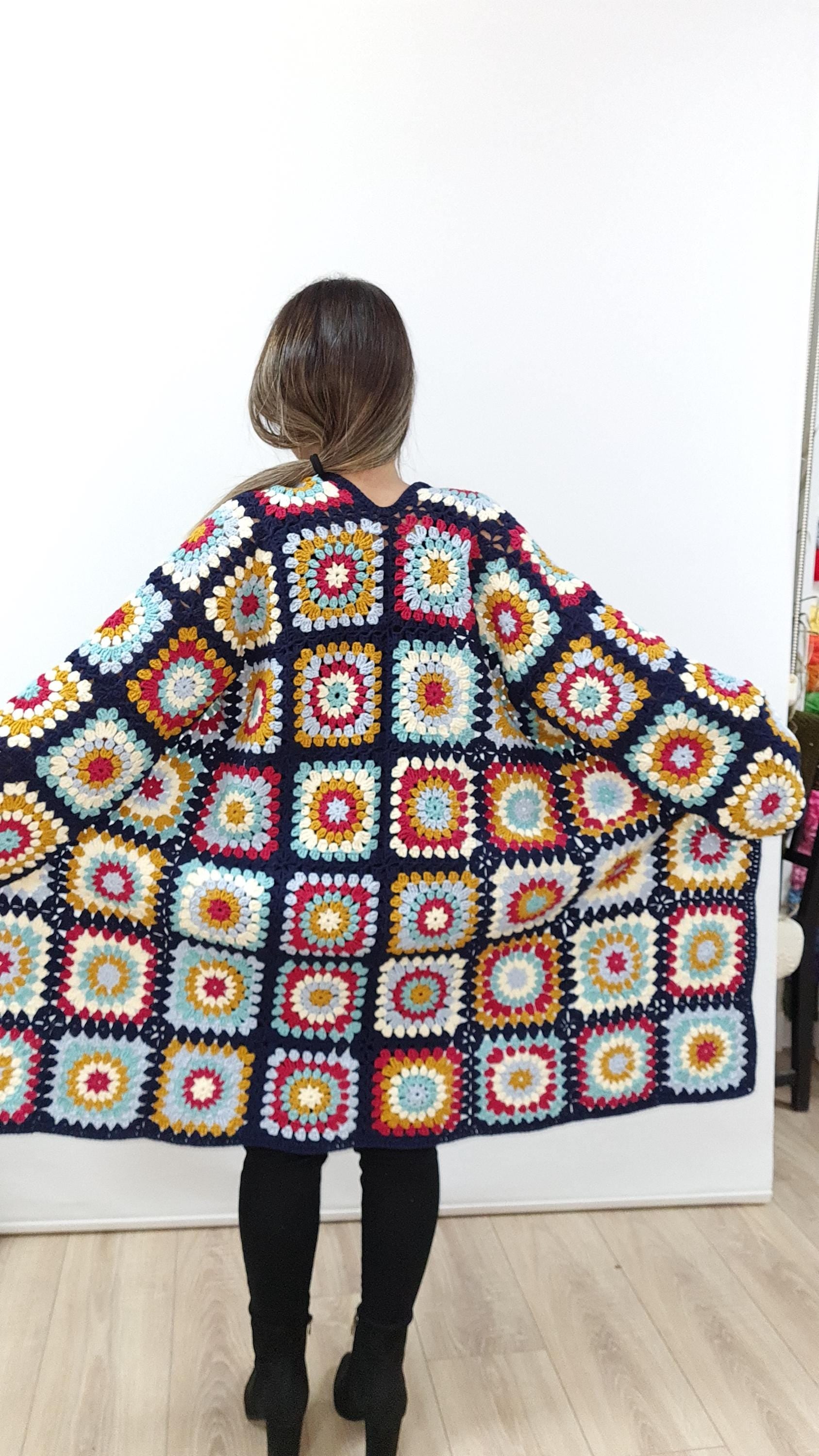An easy modern crochet pattern of a classic style of granny square cardigan. The Pattern includes description and drawing of square joining. It is a unisex design of a trendy modern sweater. The jacket can be made with or without button, short or long sleeves, long or crop length. The pattern is for intermediate level but each crocheter can make many different projects with it. You can make a cardigan, crop jacket, long coat or a vest.